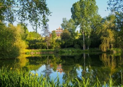Au cœur des Combrailles, face à la chaîne des Puys, se trouve le centre d’études et de méditation bouddhiques Dhagpo Kundreul Ling et son grand temple à l’architecture remarquable. Construit dans les années 1990, le grand temple avec ses fresques exceptionnelles et sa délicate ornementation est une véritable œuvre d’art. Chacun est invité à venir découvrir ce lieu sacré au symbolisme profond en visite libre ou guidée. En contrebas du temple, le parc abrite une bambouseraie d’inspiration orientale propice à la contemplation.